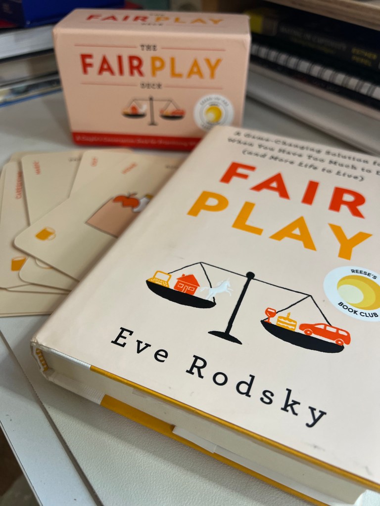 Fair Play Book and The Fair Play Deck, by Eve Rodsky. Every couple with kids should read this book and play the Fair Play Deck to learn how to cope with the stress of life, balance the mental load, and find an equitable way to run the household and maintain the love and friendship in your relationship. This system helps your relationship with your partner and your children!